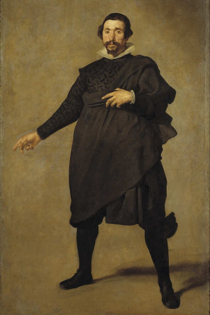 Es considerado uno de los retratos más singulares dentro de la producción de Velázquez, destacando por su radical simplificación del espacio. El personaje aparece aislado sobre un fondo neutro, sin elementos decorativos ni arquitectónicos que ubiquen la escena en una habitación o paisaje, recurso poco frecuente en la pintura de su tiempo. Esto convierte la obra en un ejercicio de innovación donde la figura del protagonista, un bufón o hombre de entretenimiento de la corte de Felipe IV documentado al servicio de la Corte entre 1632 y 1648, se afirma en un espacio indefinido únicamente a través de la sombra que proyecta su cuerpo.