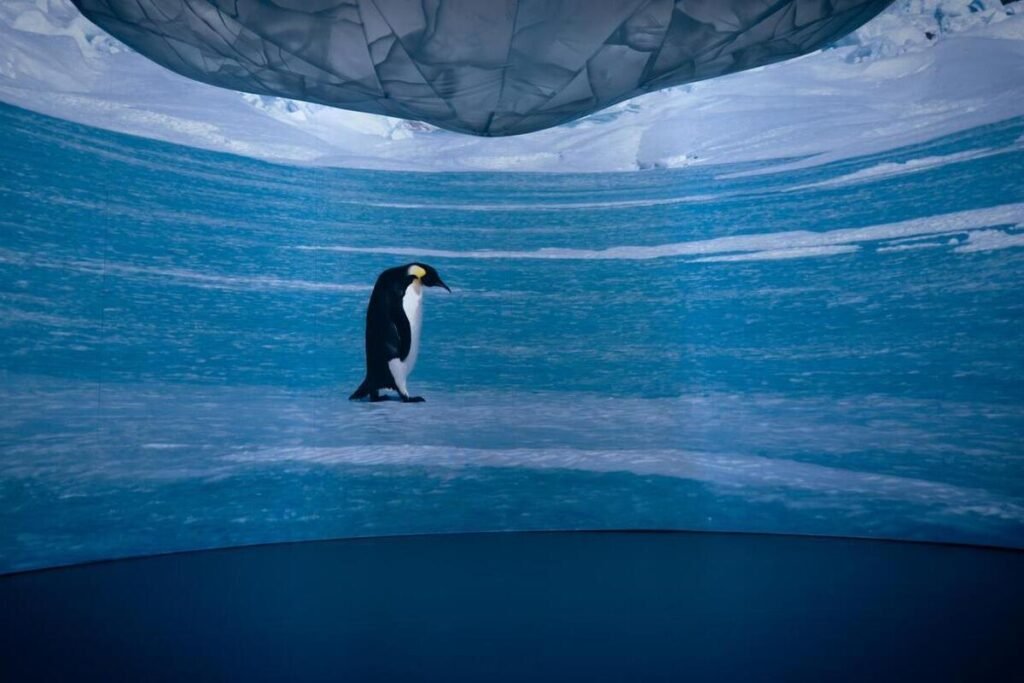 Durante aproximadamente una hora, el visitante se adentra en una experiencia audiovisual envolvente que atraviesa el continente desde la Patagonia hasta el Polo Sur, y que combina imágenes de paisajes antárticos captadas por Luc Jacquet durante años de expediciones. A través de una proyección en 360 grados sobre la cúpula de Las Arenas y de un sistema de sonido inmersivo, la exposición propone un recorrido sensorial por el ecosistema helado del continente blanco. La tecnología utilizada permite explorar entornos marinos, terrestres y subacuáticos, con presencia de fauna como focas y pingüinos, y escenas que muestran la inmensidad del hielo y su transformación. El objetivo es ofrecer una inmersión emocional y científica que conecte al público con la belleza y la fragilidad del entorno antártico.