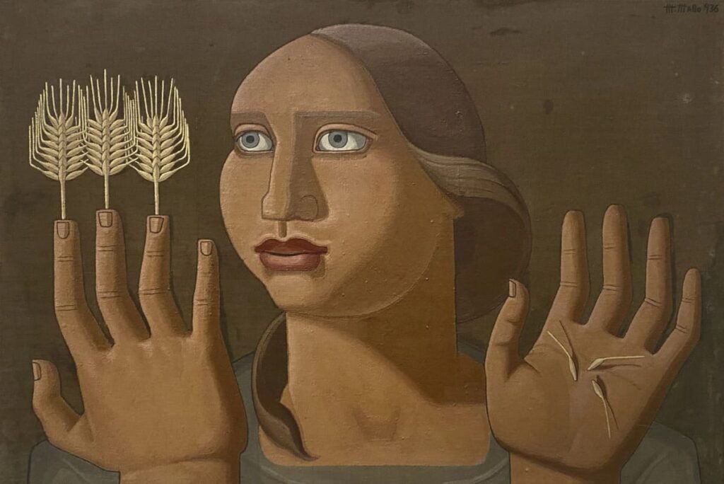 Algunas de las obras que integran la muestra son Sorpresa del trigo (1936), procedente de una colección privada, y dos obras emblemáticas pertenecientes a los fondos del Museo Reina Sofía: Tierra y excrementos (1932) y Antro de fósiles (1932), ambas pertenecientes a su serie de madurez en la que Mallo exploró la tensión entre lo orgánico y lo urbano. Estas pinturas permiten apreciar la evolución de su lenguaje desde el surrealismo y el realismo mágico hacia una visión más simbólica y estructurada, donde naturaleza, materia y geometría se entrelazan en una poética personal de gran potencia visual.