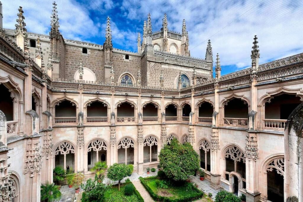 Mandado a construir por Isabel la Católica tras la batalla de Toro, el Monasterio de San Juan de los Reyes es uno de los mejores ejemplos del estilo gótico isabelino. Su iglesia, de una sola nave elevada, transmite una sensación de verticalidad solemne, mientras que el claustro constituye uno de los espacios más bellos y armoniosos de Toledo.
