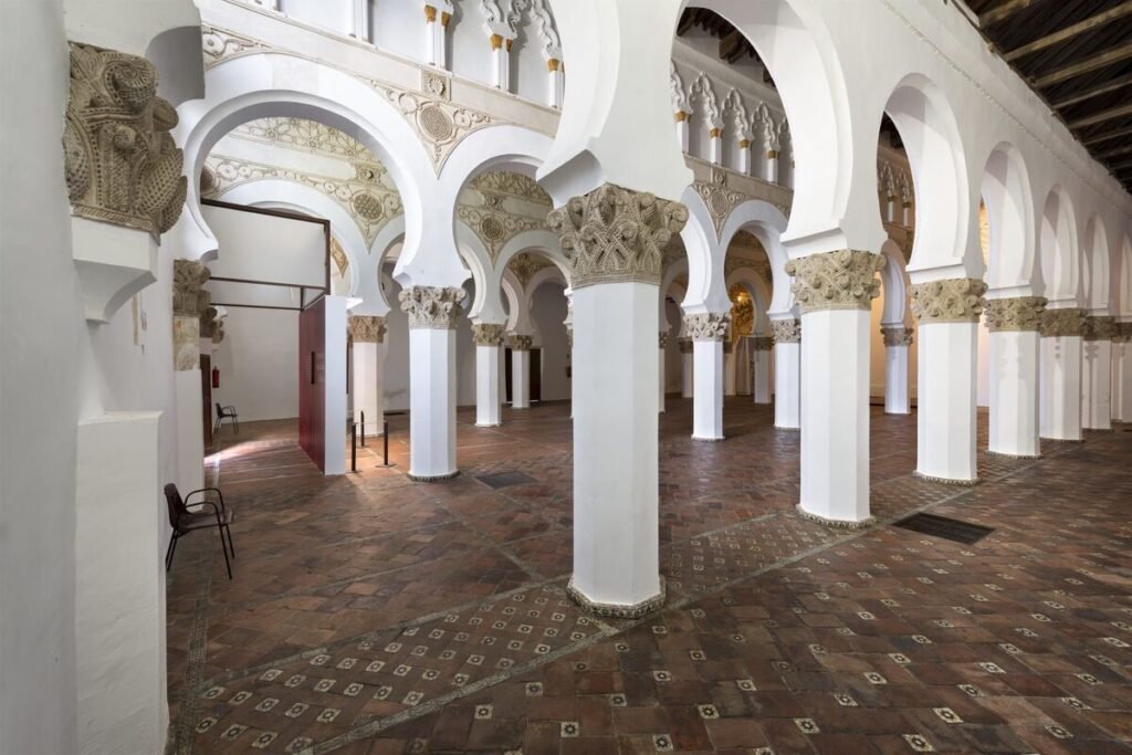 La Sinagoga de Santa María la Blanca, con sus arcos de herradura y su luminoso interior blanco, sorprende por su estética de inspiración islámica. Muy cerca se encuentra la Sinagoga del Tránsito, que alberga el Museo Sefardí y conserva una rica decoración mudéjar. Ambos espacios permiten comprender la profundidad de la herencia judía en Toledo y el significado histórico de su pérdida.